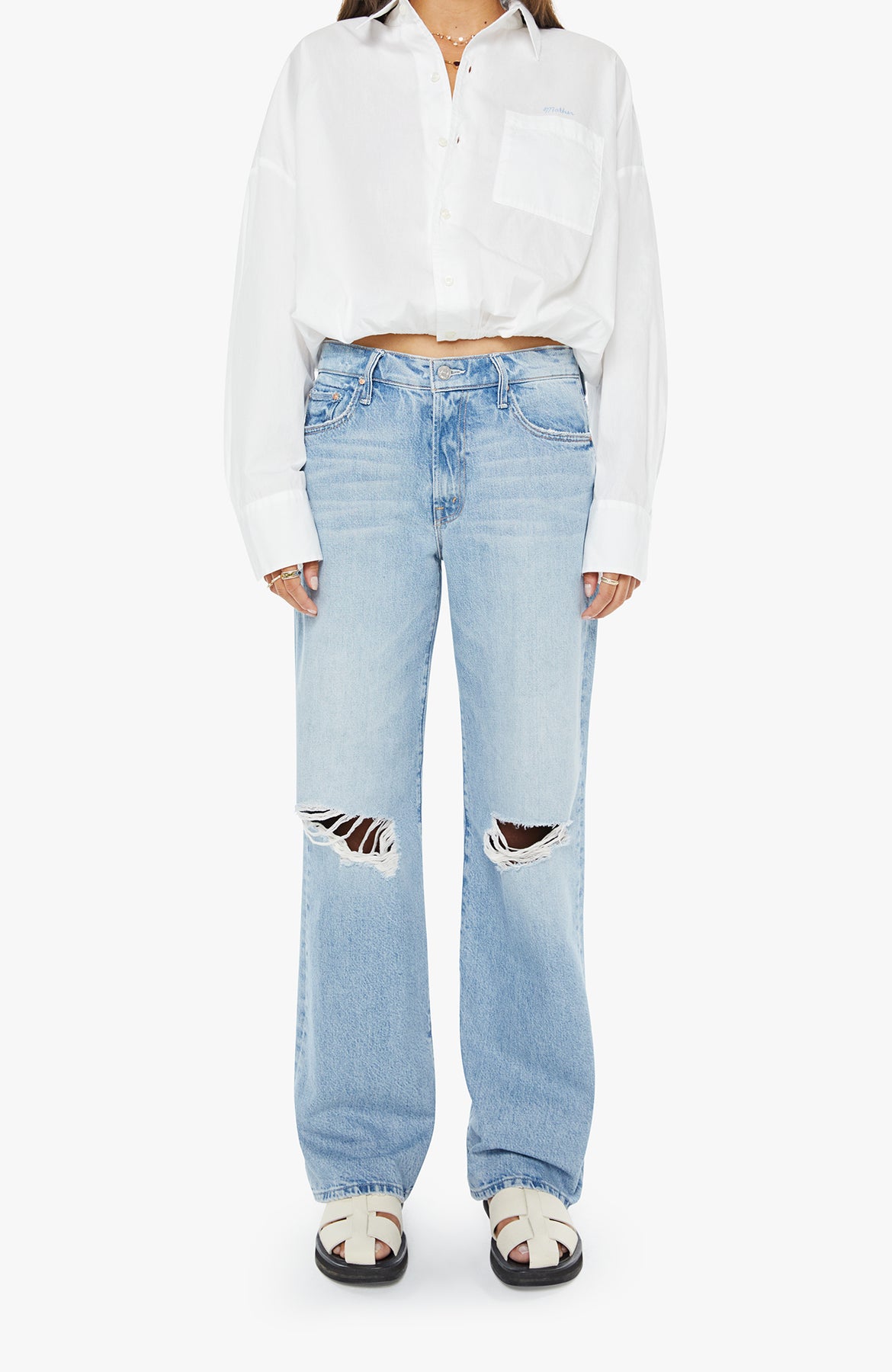 Effortless cool meets timeless denim. The Mid Rise Maven Sneak delivers that coveted vintage-inspired look with whiskering, fading, and strategic knee tears that tell a story. Cut in a relaxed wide-leg silhouette with a mid-rise fit and 32-inch inseam, these rigid SUPERIOR denim jeans are built to mold to your body over time—each wear adds character and comfort. The clean hem and zip fly keep the aesthetic sharp and intentional. Perfect for anyone who appreciates denim that gets better with age and isn't afraid to invest in a piece that becomes uniquely theirs. This denim also features a zip fly