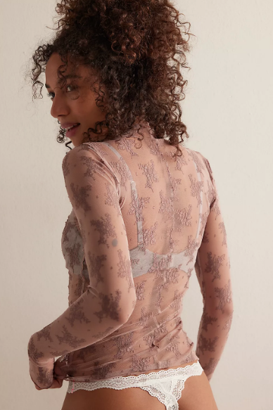 Elevate your layering game with the Lady Luxe mesh long-sleeve. This sheer, floral-embroidered top features a flirty high neckline and thumbholes for a fun twist. Its relaxed fit and fluttery hemline add effortless charm, making it the perfect playful piece to mix and match.