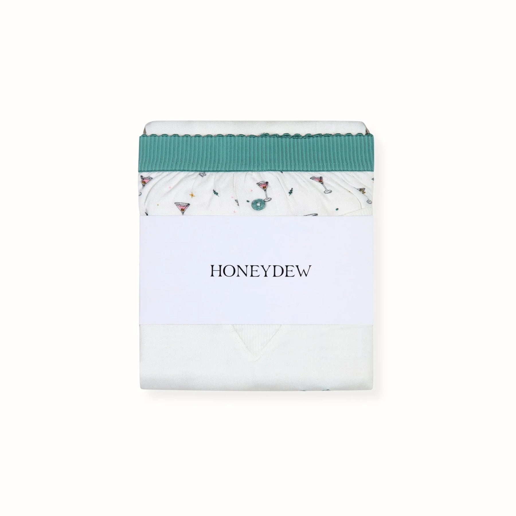 A long sleeve crewneck top paired with a boxer short in a lightweight, french terry fabric.