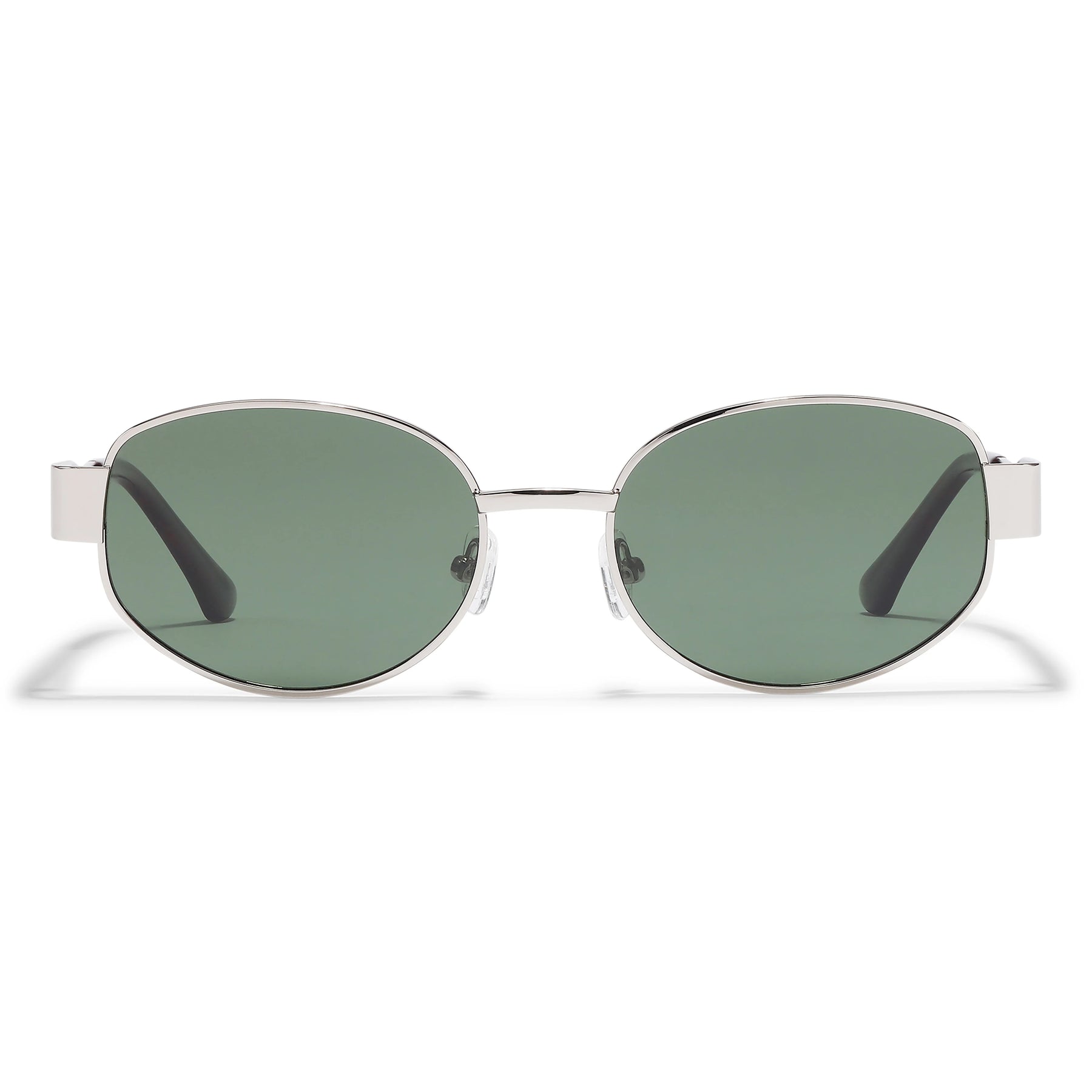 Escape in style with the REILLY sunglasses from Pilgrim. These silver/black-toned frames crafted from 80% recycled stainless steel pair beautifully with rich dark green/black lenses for that quintessential road-trip vibe. The sleek oval shape and slim profile strike the perfect balance between effortless cool and understated sophistication—ideal whether you're cruising city streets or chasing spontaneous adventures. Full UVA/UVB and UV400 protection keeps your eyes safe, while the included soft pouch doubles as a cleaning cloth. CE-certified and ready to fuel your freedom.