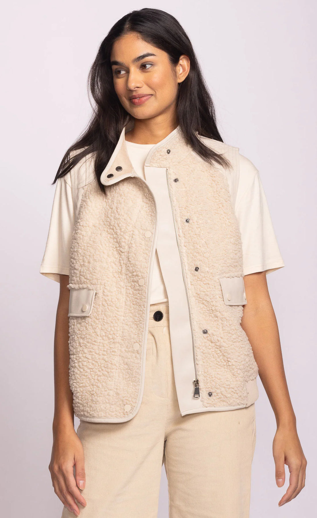 The Vincino Vest brings cozy fleece and sleek leather trims together for an effortlessly cool look. Perfect for those in-between weather days, it layers like a dream—throw it over your favorite long-sleeve and jeans for easygoing vibes, or slip it on top of a dress to add a little edge to your evening style. Comfort never looked this stylish!