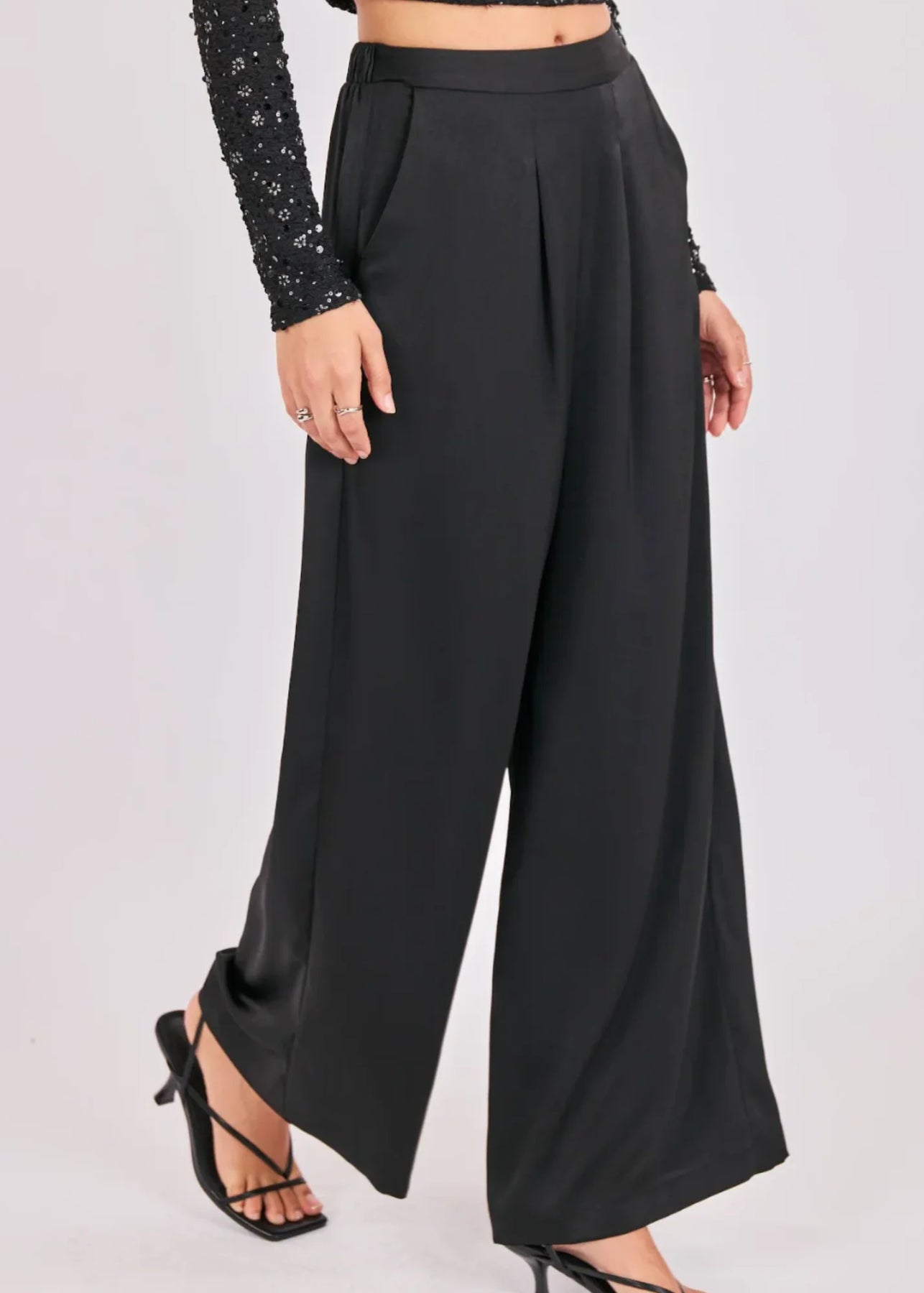 Slip into the Romy Satin Pleated Pant and watch your style level soar! Perfect for dressing up on date night or keeping it chic at work, these pants glide with a silky satin finish and playful pleats that move with you. Elevate your everyday wardrobe with a touch of fun sophistication that’s as versatile as your schedule.